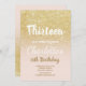 Chic gold glitter ombre script thirteen Birthday Invitation