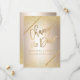 Chic yellow Gold typography on gold metallic foil gold glitter ombre and faux gold geometric stripes chic change the date wedding ,to announce the postponement of your wedding and new plans