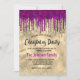 Chic gold hot pink purple glitter drips Christmas Invitation