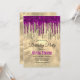 Chic gold hot pink purple glitter drips monogram invitation