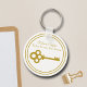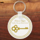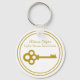 This chic realtor keychain is custom made with your real estate company under the the realty agent name in gold typography. A beautiful old fashioned gold key adds a classic touch to this elegant housewarming gift.