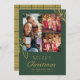 Vintage Gold Green Plaid Script 3 Family Photos Christmas Card