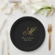 Chic Gold Monogram Script Black Wedding Paper Plate