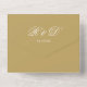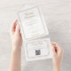 All-in-one wedding gold invitation featuring elegant typography and monogram initials. The invitation includes a perforated RSVP with your wedding website QR code and details. Designed by Thisisnotme©