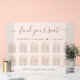 Chic wedding seating chart frosted acrylic sign for up to 12 tables featuring "find your seat" in an elegant gold script with swashes, your names and wedding date joined together with a heart and "We're so glad you're here" in simple gold lettering.
