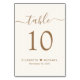 Chic light cream wedding reception table number sign with "table" in an elegant gold calligraphy script with swashes, the table number in classic gold serif typography, your first names joined by a heart and your reception date. Create each table number and add to your shopping cart one at a time, then check out once all numbers are in your cart.