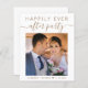Budget-friendly elopement or private wedding announcement and reception or celebration party invitation. The front features your wedding day photo, "Happily Ever After Party" in simple gold typography and a chic gold script with swashes, your first names and wedding date. On the back, personalise your message and party or reception details and add your names in a signature-like gold script. This budget semi-gloss paper is similar in weight to photo paper. A larger 5x7 traditional card stock version is also available (message us for the link).