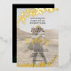 Chic gold typography Floral green wedding invitation with hand painted gold and green foliage. Add your photo with real gold foil and white overlay