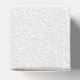 Elegant white on white filigree print pattern with your names in chic gold lettering, these 2" square party favour boxes are beautiful for wedding favours, bridal shower favours or any special occasion.