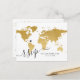 Chic Gold World Map with Heart RSVP Postcard