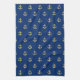 Chic Gold Yellow Anchor Pattern On Dark Navy Blue Tea Towel