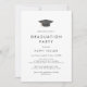 This chic grad cap photo graduation party invitation is perfect for a modern outdoor party. The simple design features classic minimalist black and white typography with black and gold watercolor graduation hat.
