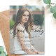 This chic graduation party invitation features sophisticated handwritten black script over a trendy full photo of your graduate. Customise this grad card with a 2nd high school, college, or university photograph on the back below your senior details. The front picture is overlaid with stylish sheer white for a modern look to your card.