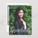 This elegant white typography overlay photo graduation card features chic white script over your high school or college graduation photograph. Customise with your name and class under the lovely calligraphy and add a 2nd picture on the back, along with your personal details.