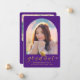 Send your family and friends a unique personalised photo graduation announcement featuring your photo with a modern oval border in purple. Below in faux gold script is the word "Graduate" with your name, school and year to personalise accented by a gold graduation cap. The back of the card has a 2nd photo with graduation details. Designed by Susan Coffey.