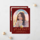Chic Graduation 2 Photo Gold Cap Script on Red Announcement