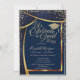 Chic Graduation Cap Diamonds Navy Blue Graduation Invitation