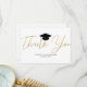 Send a modern thank you card to your family and friends for your graduation. This typography design features an illustration of a black graduation cap and diploma with a modern faux gold script that reads. "Thank You" in hand lettered font with your name and class/year below to customise. The back of the card has a thank you message and signature you may personalise or delete. Designed by artist ©Susan Coffey.