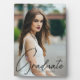 This chic graduation photo plaque features sophisticated handwritten black script over a trendy full photograph of your graduate. Customise this grad keepsake gift with your grad year and name.