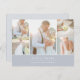 A modern photo thank you postcard designed to accommodate five of your favourite wedding photos in a collage layout. "Love and thanks" appears along the bottom in chic handwritten script lettering, with your names beneath, on a band of pale foggy blue-grey. Postcards reverse to show your return address with ample space for recipient addressing, as well as an optional pre-printed message. If you prefer to add a handwritten message, simply delete the sample text shown.