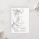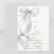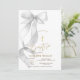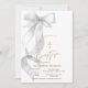 Chic Gray Bow Gold Cross Baptism Invitation