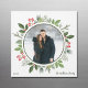 This gorgeous olive green with holly berry Christmas wreath encircles your holiday photo inside of a circle. A chic square holiday magnetic card for a modern couple or family. Botanical leaves spring out of the beautiful photograph magnet.