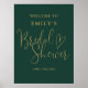 This chic elegant emerald green and gold script bridal shower welcome sign can be personalised with your name and special date. Designed by Thisisnotme©