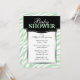 Stylish and unique zebra print Baby Shower invitations featuring a black frame header design over a green & white zebra stripes pattern, and custom printed with your celebration details.