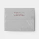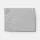 Lovely wedding thank you card envelope done in light grey, with lovely silvery grey flourishes, on the outside and inside of the envelope. A chic burgundy covers the inside of the envelope. Burgundy text return address, on the back flap, is fully customisable and ready to personalise with your information.