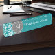 Chic Grey and Teal Damask Pattern Custom Monogram Nameplate