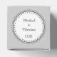 Chic grey personalised favour box for bridal shower or ceremony or any occasion. Has lace look ribbon around box