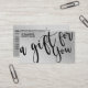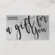 This is the perfect gift certificate business card for a trendy, stylish, girly, and modern businesswoman. This design features a simple black handwritten brush script typography on a faux printed sparkly silver glitter and light grey ombre gradient glamourous and chic background. It's the perfect way to allow your customers to buy a gift for their family and friends and at the same time promote your business.