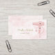 Introduce clients to your brand of chic with this feminine hair and beauty business card featuring a soft pink FAUX glitter like hairdryer against a simple watercolor style background. Personalise stylish design by adding the name of the hairstylist or beautician. Flat printed image, NOT actual glitter.