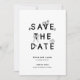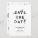 This Save the Date card features a fun black-and-white design with wedding-themed icons integrated into the lettering. It highlights the couple’s names and their wedding date, in a clean modern layout. Simple and stylish with a playful touch.