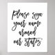 Modern and chic sign that says "Please sign your name around our states"