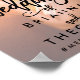 My thoughts on this product was excellent. Well printed in a gloss finishing and just the size l ordered. It arrived in good condition and am overall satisfied with the product. The printing turned out great. I was quite surprised with the finishing touch to the poster. The semi gloss was just right and a perfect size to display at the wedding.