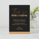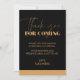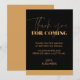🎉 Show your gratitude in style with the Black Gold Chic Elegant Birthday thank you card. The front features a sleek black background that fades into a luxurious gold base, creating a sophisticated contrast that instantly catches the eye. At the top, a bold gold script reads “thank you for coming,” followed by a heartfelt thank‑you message and “love + [name]” in matching gold lettering. The reverse side continues the elegance with a smooth gold backdrop, providing ample space for a personal note. This Black Gold Chic Elegant Birthday thank you card is perfect for birthdays of all ages, offering a timeless, chic and elegant way to express appreciation. ✨🥂