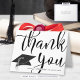 Custom graduation thank-you note cards that can be personalised with the graduate's name and class year on the front along with a full-bleed over-sized THANK YOU title in a chic handwritten script font with a black and silver mortarboard. The inside offers the option to pre-print your thank-you message or opt to delete the sample text to leave the inside blank for handwriting notes of appreciation. Contact the designer via Zazzle Chat or makeitaboutyoustore@gmail.com if you'd like this design modified, on another product or would like coordinating items.