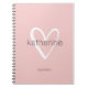 This blush pink notebook is personalised with your name in a simple font over a large white heart. Ideal for yourself or a great gift for any occasion. MORE colours, designs and matching items in our store.