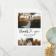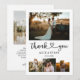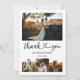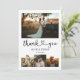 Celebrate your love journey with our exquisite wedding thank you card, crafted for couples who appreciate the blend of classic and contemporary. The card's front is a visual tableau, with a captivating rectangular photo taking pride of place at the top, setting the tone for the narrative below. This is followed by a trio of square photos, each capturing a distinct memory from your special day. Interwoven gracefully amidst these cherished images, your names stand out in a refined serif font, exuding timeless elegance. This classical touch is harmoniously paired with the phrase 'Thank You' in a chic modern script, with a heart delicately positioned between the words, embodying the love that binds you two together. Transitioning to the back, another photo space beckons, allowing for one more cherished moment to be immortalised. Complementing this is an area reserved for your custom message, ensuring your gratitude is articulated in the most personal way. With its fusion of classic design and modern aesthetics, our card provides the perfect canvas to convey your heartfelt thanks.