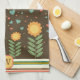Chic Heart Floral Pattern Brown Monogram Initial Tea Towel