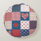 A chic Round Pillow or Cushion, with a faux-patchwork of hearts and red rose patterns. Part of the Posh & Painterly 'Hearts & Roses' collection, this pattern can be adjusted to fit any Pillow or Cushion.