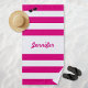 Chic Hot Pink and White Stripes Personalised Beach Towel