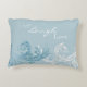 Lovely accent pillow done in a icy blue colour, with graphics of blue, aqua, and white flourishes, along the bottom. White text, on the top half of the pillow, reads Live, Laugh, Love. Elegant accent for any part of the house and makes a charming gift idea.
