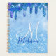 Chic ice blue ombre glitter drips monogram noteboo planner