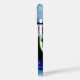 Elegant and eyecatching phone case features a vibrant image of agate geode slices in bright shades of indigo, blue, and purple on a black background. Personalise with your initials or monogram tucked into the design in classic white lettering.