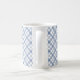 A chic White Ceramic Coffee Mug, with an Indigo Blue and White diagonal Check Pattern. Part of the Posh and Painterly 'Indigo' collection, this pattern can easily be adjusted to fit any Mug.