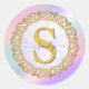 Chic Iridescent Initial With Gold Scrollwork Classic Round Sticker