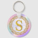Chic Iridescent Initial With Gold Scrollwork Key Ring