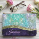 Chic iridescent purple blue faux glitter monogram personalised Accessory Pouch. It is designed with elegant girly silver and iridescent faux glitter in unicorn, rainbow, teal, aqua, turquoise and green.